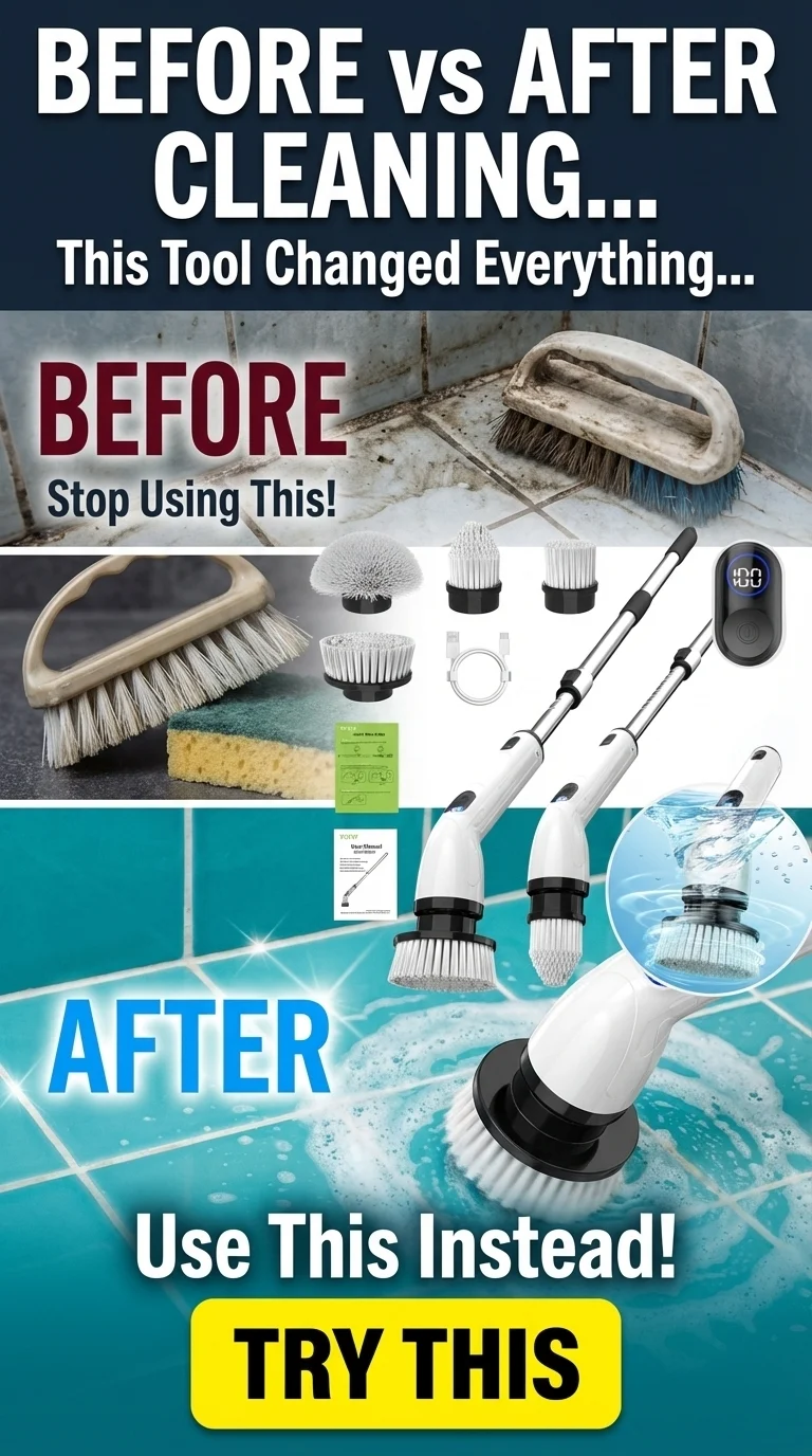 Tired of slow scrubbing results? This spin scrubber cleans tiles in minutes. Big difference guaranteed—click to see it!