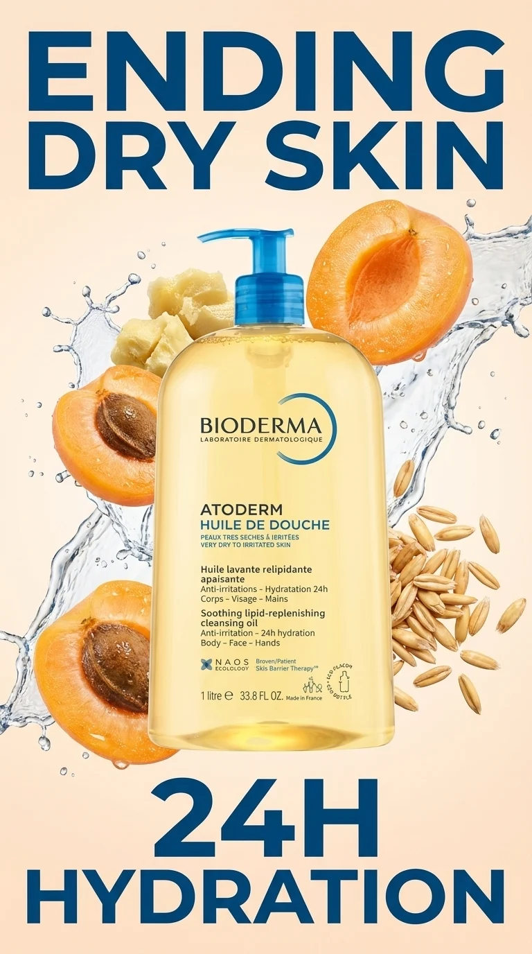 Hydrating shower oil for dry skin that gently cleanses while restoring the skin barrier. Bioderma Atoderm cleansing oil delivers 24-hour moisture, reduces irritation, and leaves sensitive skin soft and nourished. Perfect for daily body wash for very dry skin. ✨