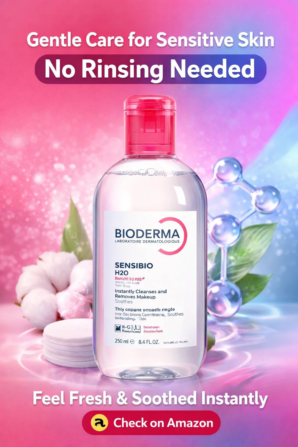 Bioderma – Sensibio – H2O Micellar Water – Makeup Remover Cleanser – Face Cleanser for Sensitive Skin
