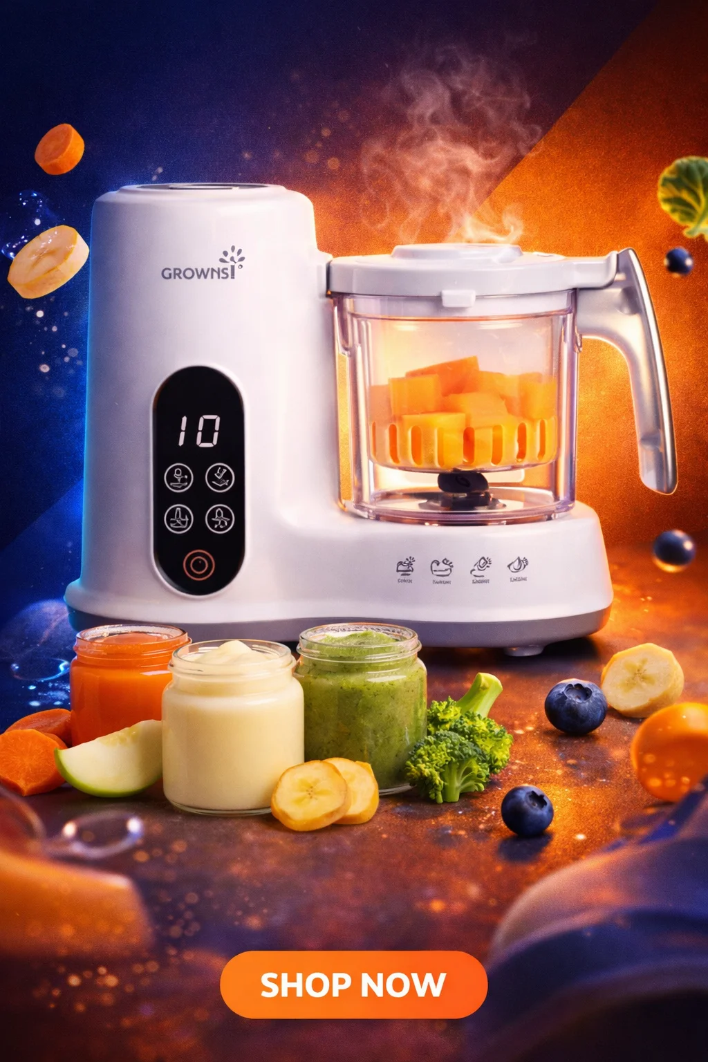 Grownsy Baby Food Maker with Steam Basket, One Step Baby Food Processor Steamer Puree Blender Grinder Mills Machine, Auto Cooking Grinding and Sterili-zing for Healthy Homemade Baby Food, BPA-Free