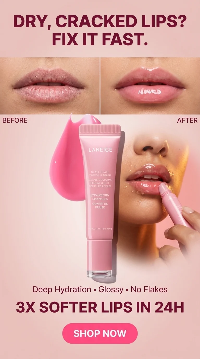 Struggling with dry lips daily? LANEIGE Lip Serum repairs, hydrates & adds shine instantly. Get soft, glossy lips—shop today!