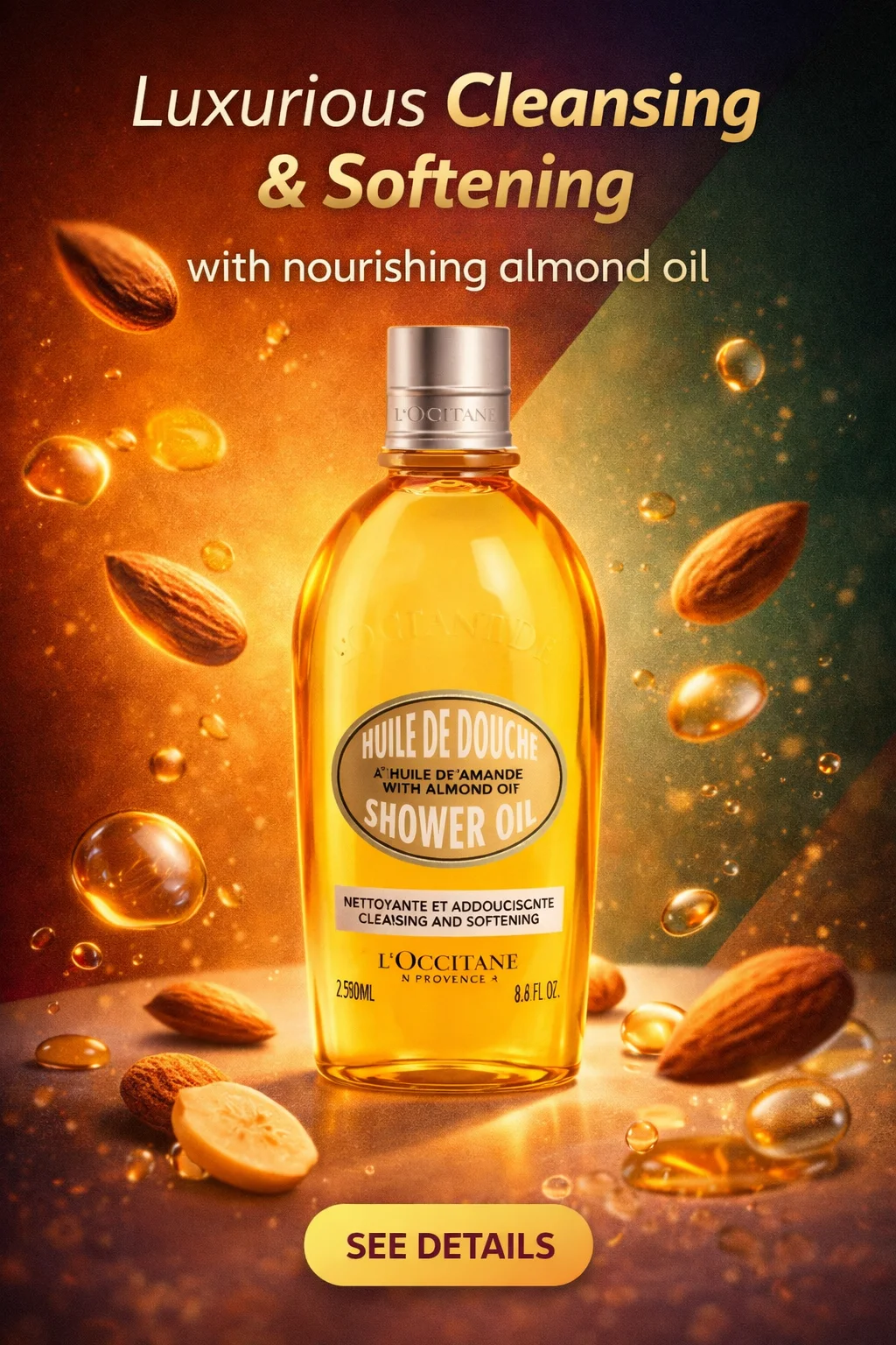 L’OCCITANE Cleansing & Softening Almond Shower Oil, Body Wash & Shaving Base Purifies & Smooths Without Drying Skin, Milky Lather, Nourishing Skincare