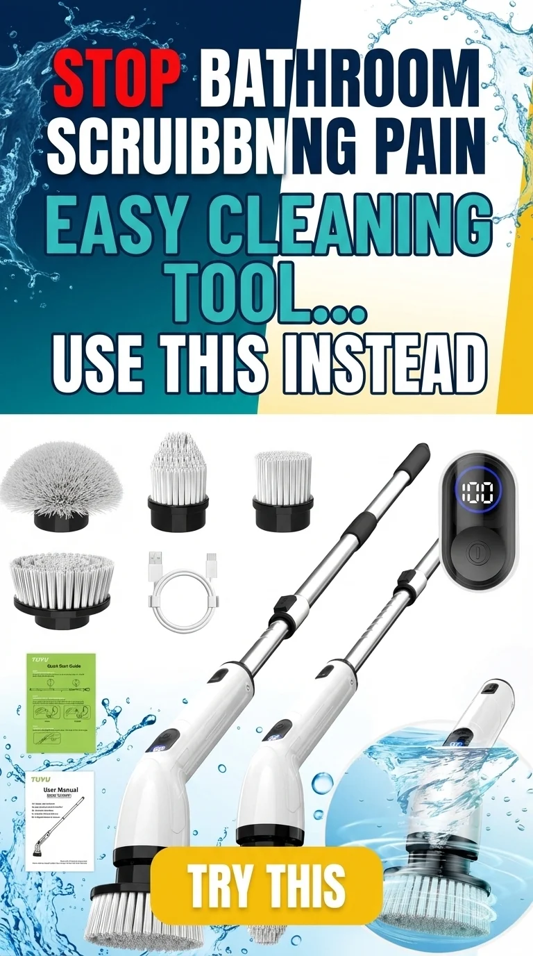 Bathroom cleaning causing pain? This waterproof scrubber cleans deep with ease. Less effort, better results—see it today!
