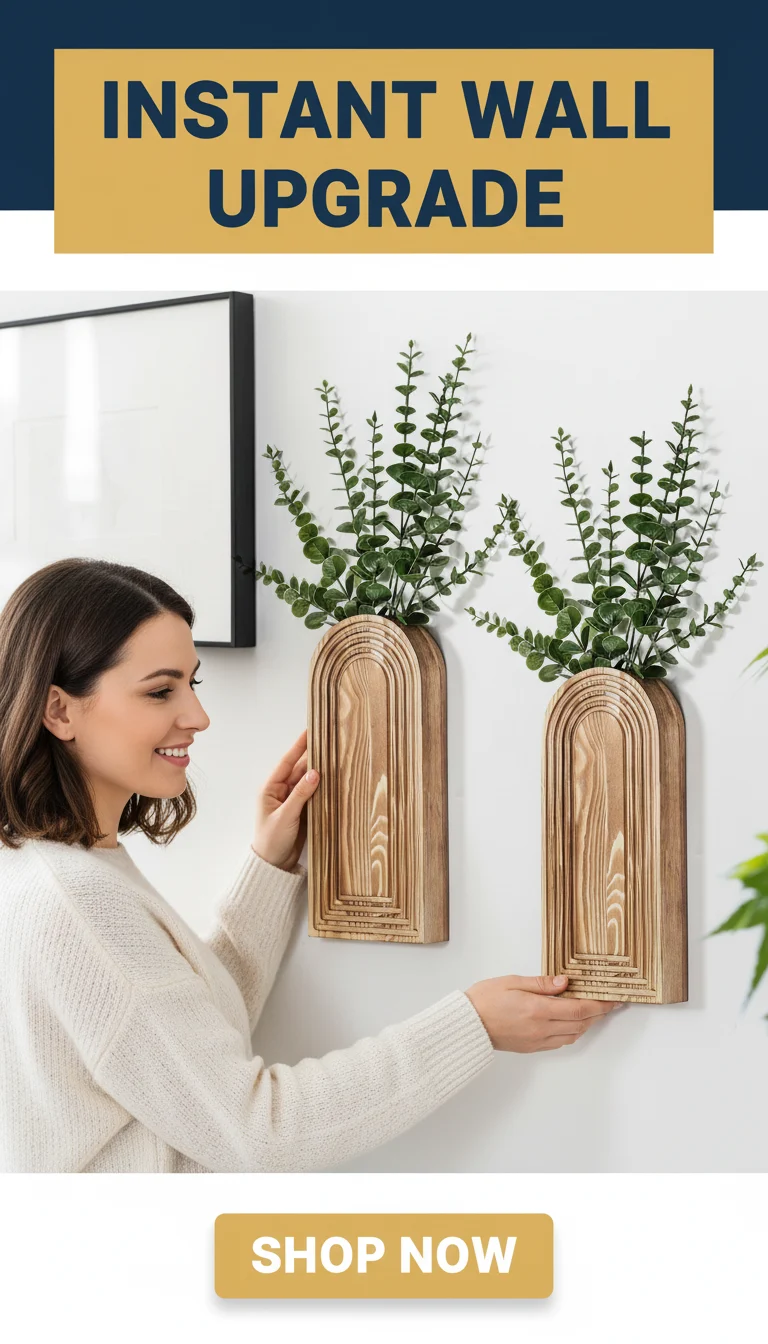 Tight spaces hard to style? This Wooden Wall Vase Set saves space & adds charm. Upgrade your decor—buy today!