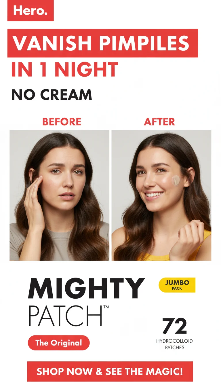 Skip the messy creams! This tiny hydrocolloid patch flattens acne fast while you sleep. Wake up to clearer skin — shop Mighty Patch now!